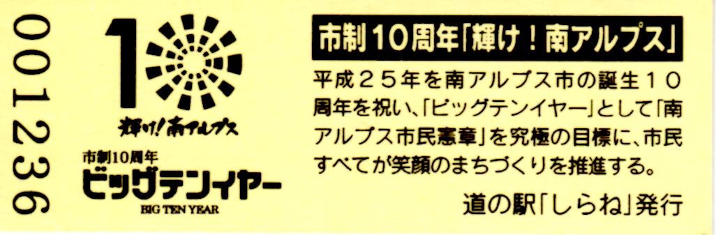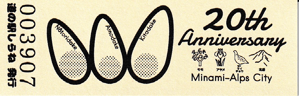 003901~004200 (特)南アルプス市市制施行20周年記念きっぷ