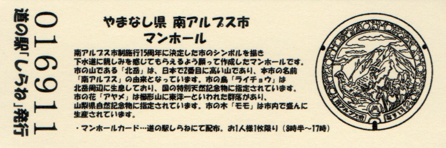 016901~017600 200円きっぷ(南アルプス市マンホール)