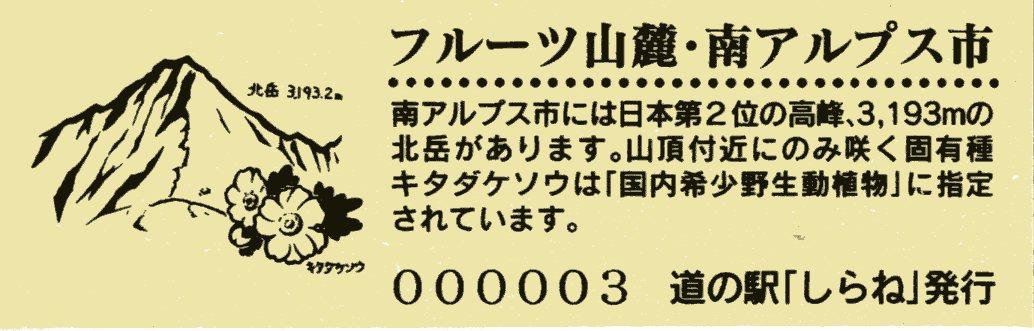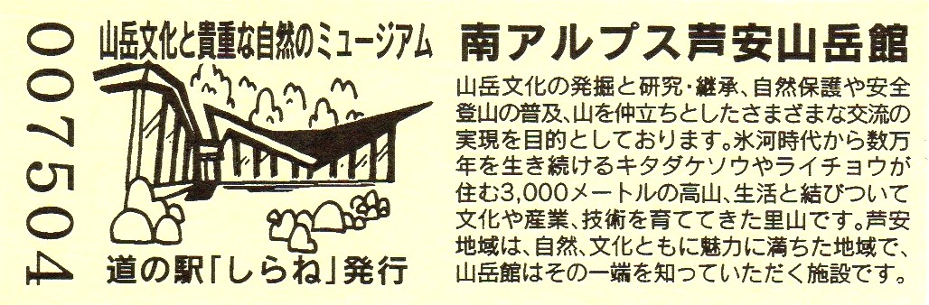 007501~007800 180円きっぷ(南アルプス芦安山岳館)