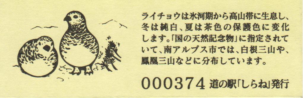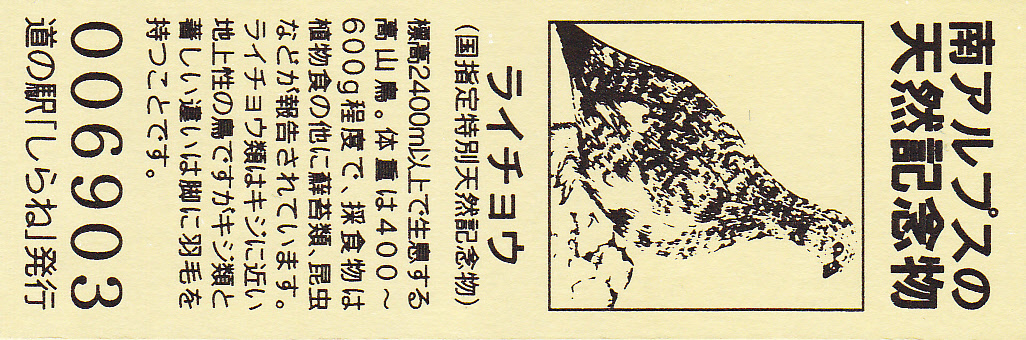 006901~007200 デザインきっぷ(ライチョウ)