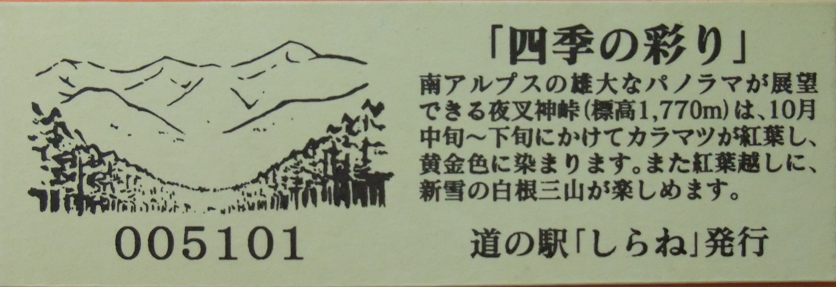 005101~005400 デザインきっぷ(夜叉神峠)