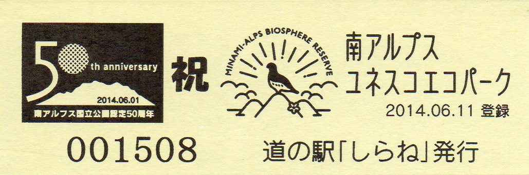 001501~001800 (特)祝!南アルプスユネスコエコパーク登録記念特別きっぷ
