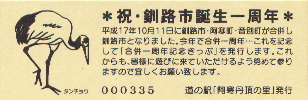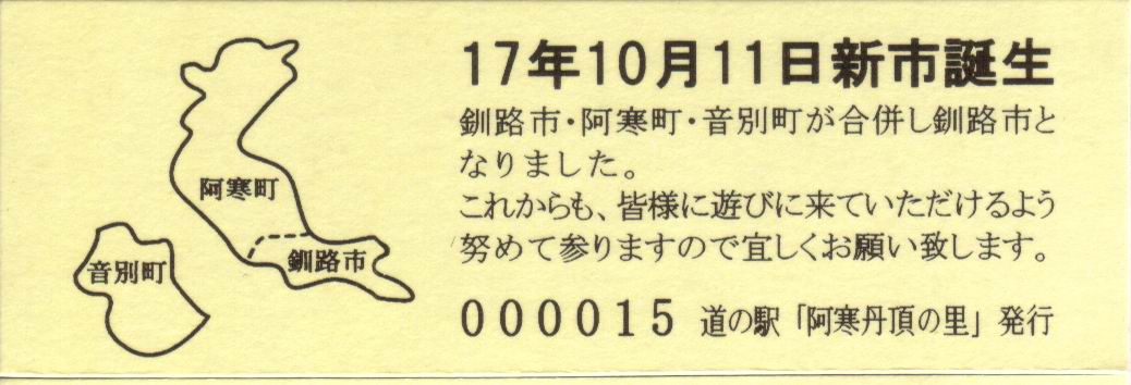000001~000300 (特)釧路市・阿寒町・音別町合併記念きっぷ