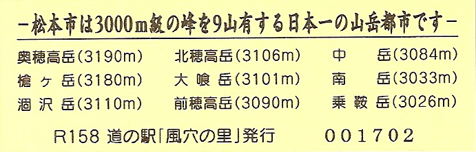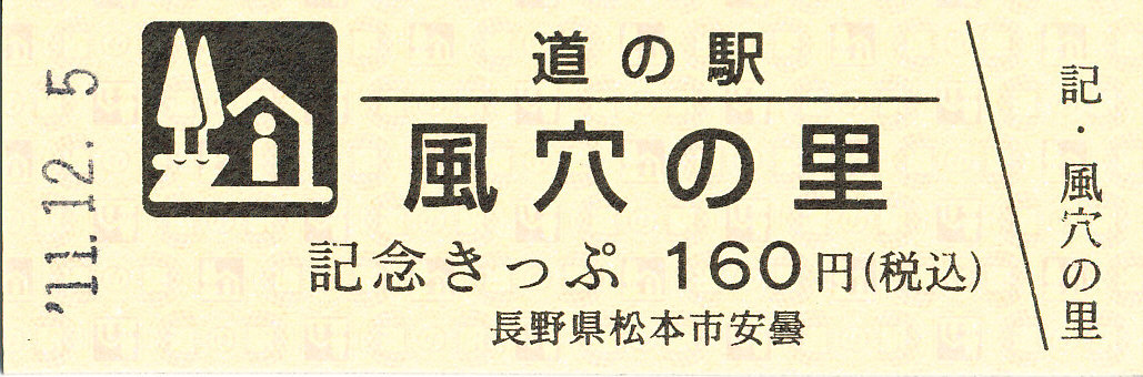 012801~013400 180円きっぷ(道の駅風穴の里)
