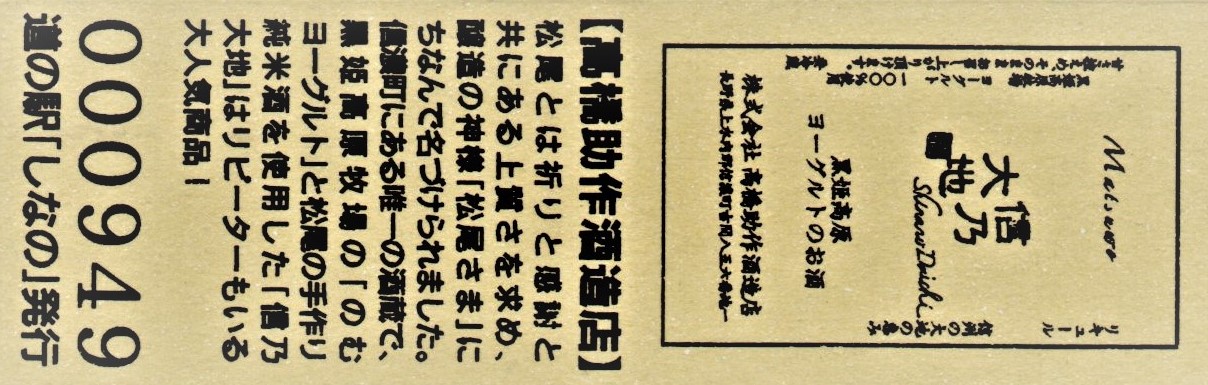 000901~001200 (特)収穫感謝祭特別記念きっぷ(高橋助作酒造店)