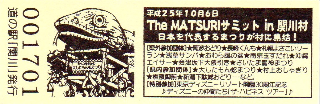 001701~002000 (特)「The MATSURI サミット in 関川」開催記念きっぷ