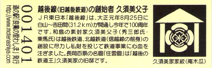 001401~001700 (特)越後線開業100周年特別記念(久須美家家紋)
