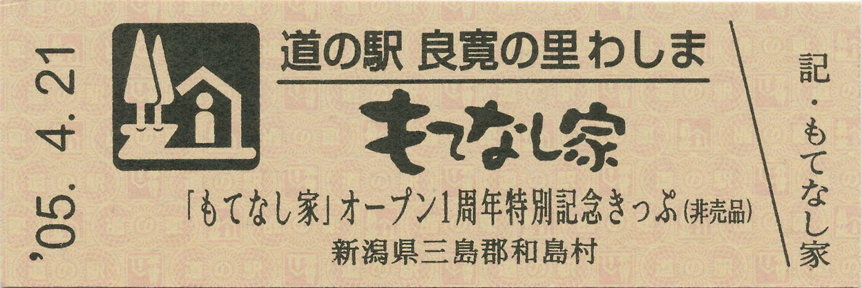 000001~000300 (特)「もてなし家」オープン1周年特別記念きっぷ