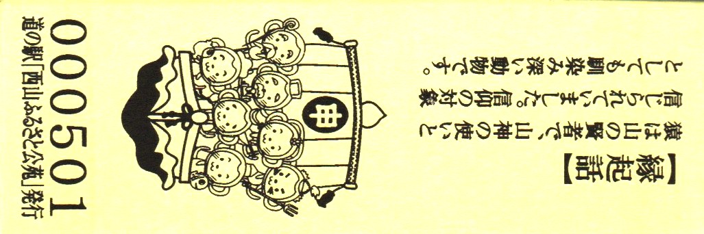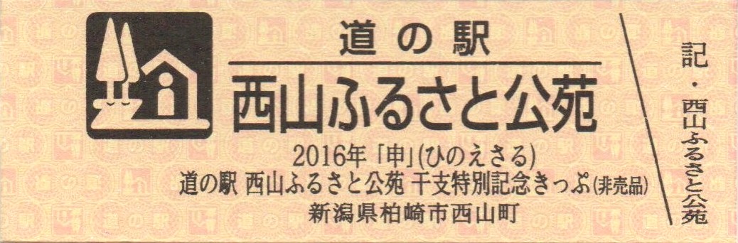 000501~000600 (特)2016年「申」(ひのえさる)道の駅 西山ふるさと公苑 干支特別記念きっぷ