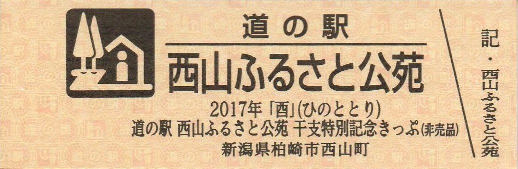 000601~000900 (特)2017年「酉」(ひのととり)道の駅 西山ふるさと公苑 干支特別記念きっぷ