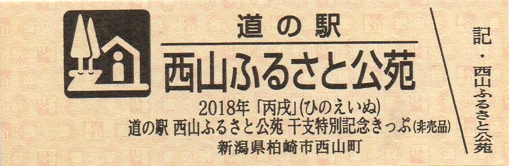 000901~001200 (特)2018年「丙戌」(ひのえいぬ)道の駅 西山ふるさと公苑 干支特別記念きっぷ