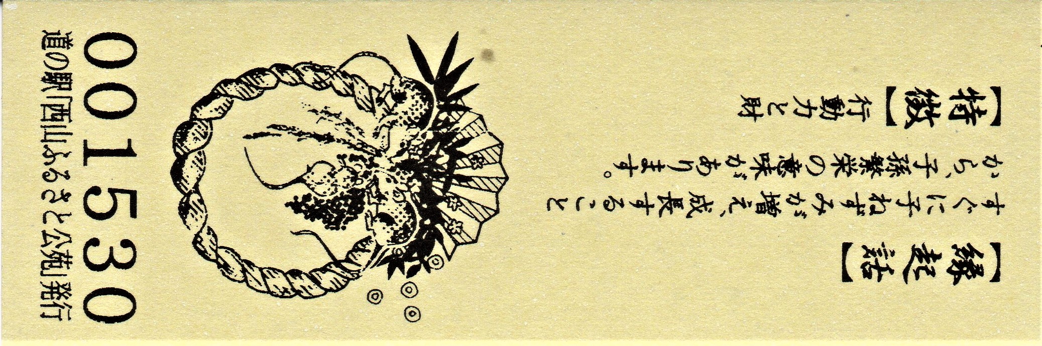 001501~001800 (特)2020年「庚子」(かのえね)道の駅 西山ふるさと公苑 干支特別記念きっぷ