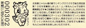 000301~000600 (特)北海道じゃらん道の駅ランキング2025総合満足度第10位受賞記念きっぷ