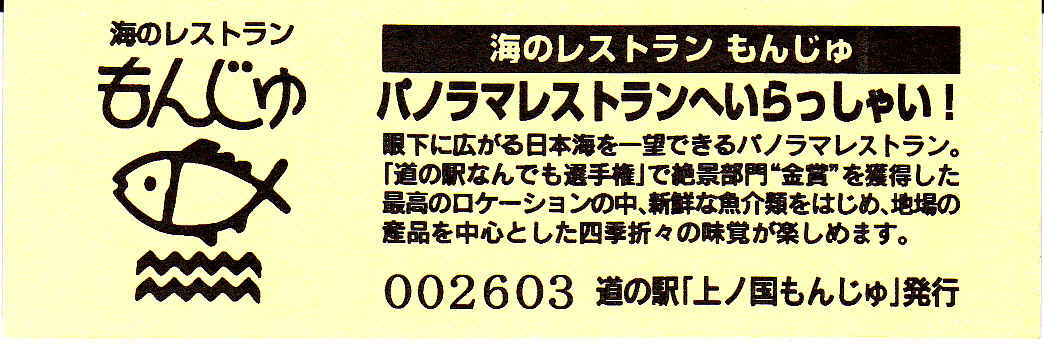 002801~003000 デザインきっぷ(海のレストランもんじゅ・右)