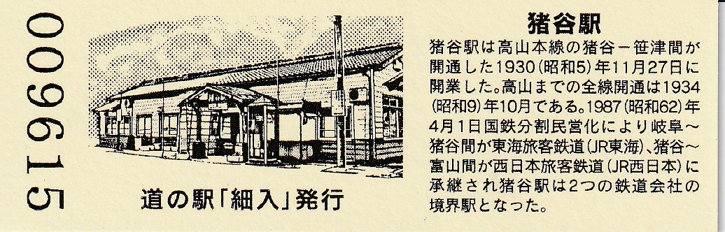 001501~001800 180円きっぷ(飛騨ふれあい物産センター)