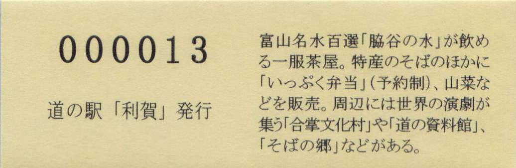 000901~001200 デザインきっぷ(合掌文化村スタンプ)
