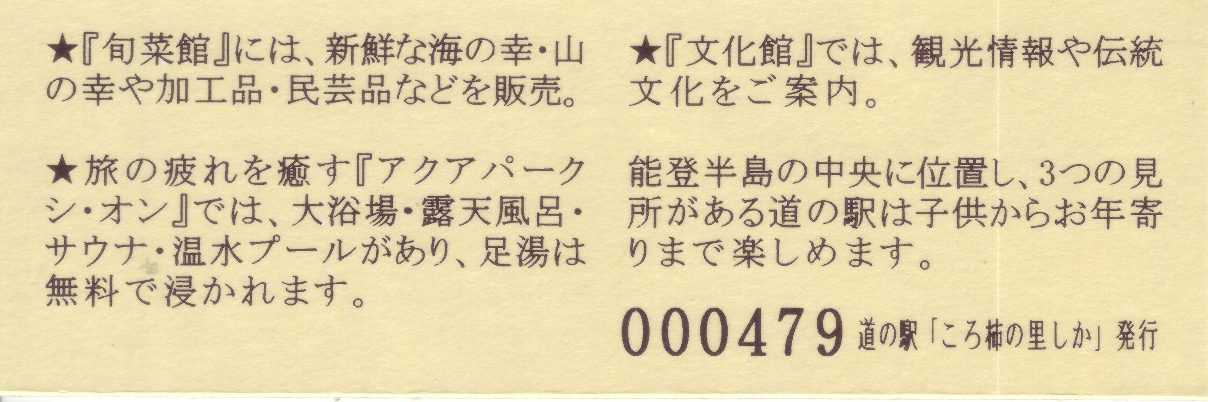 005501~006100 180円きっぷ(志賀町農産物直売所)