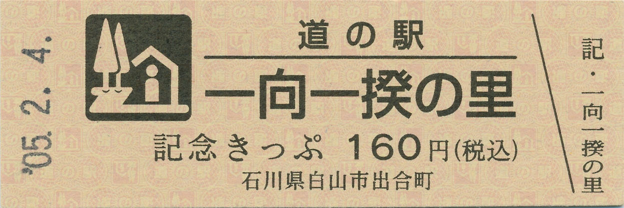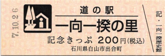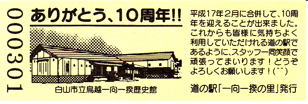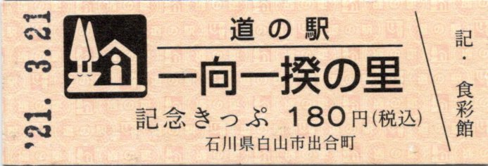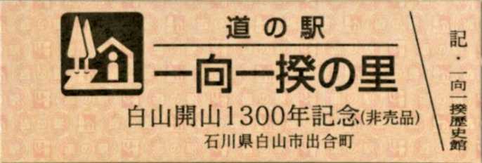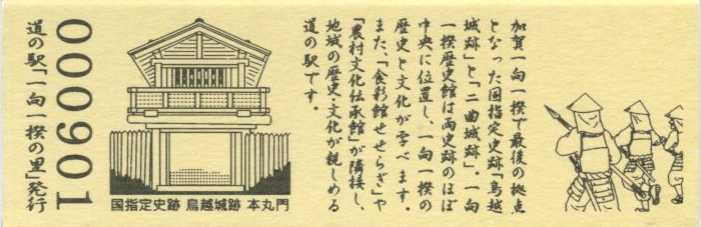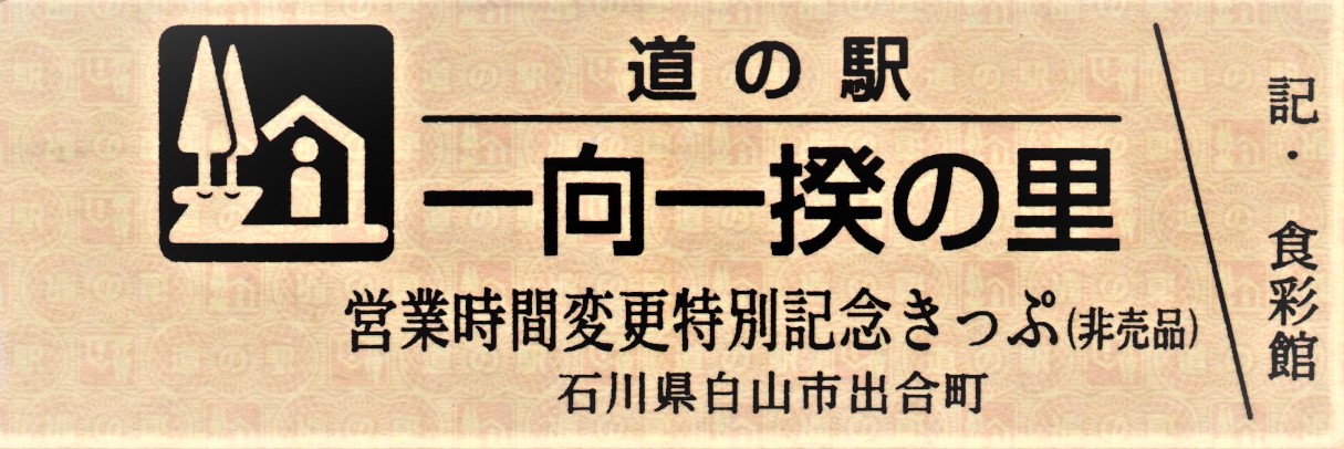 2006.06.10 販売開始(「一向一揆歴史館」版) 2007.04.13 きっぷ名変更(「食彩館」版)