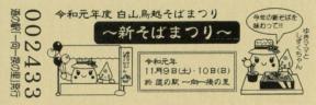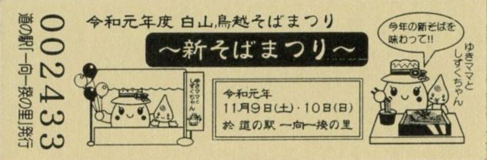 002401~002700 (特)R1白山鳥越そばまつり特別記念きっぷ