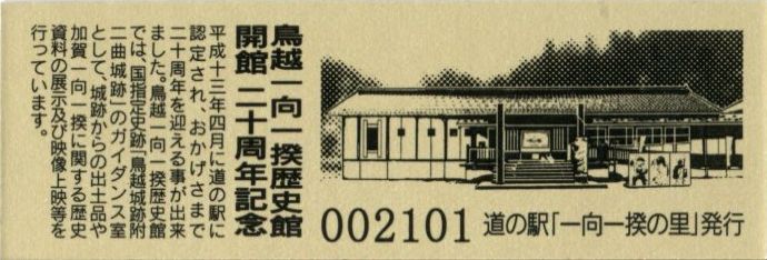 002101~002400 (特)鳥越一向一揆歴史館20周年特別記念きっぷ
