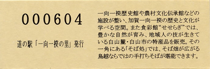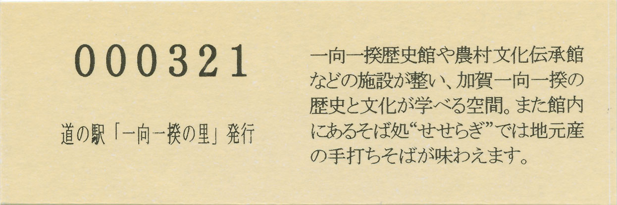 000301~000600 記念きっぷ(一向一揆の里・そば処"せせらぎ")