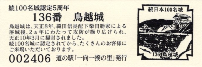 003001~003300 (特)「鳥越城跡国指定四十周年記念」特別記念きっぷ