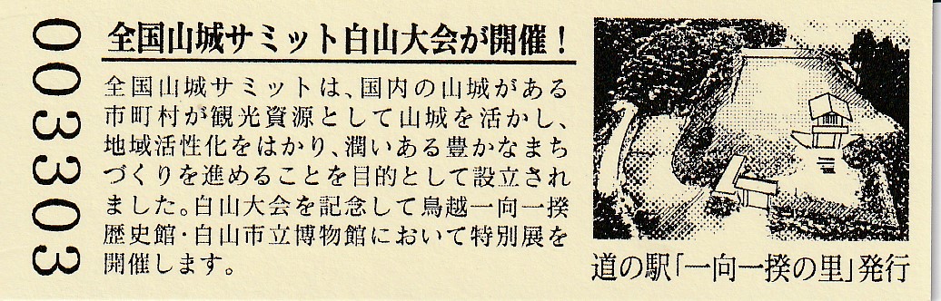 003301~003600 (特)「全国山城サミット白山大会」開催特別記念きっぷ