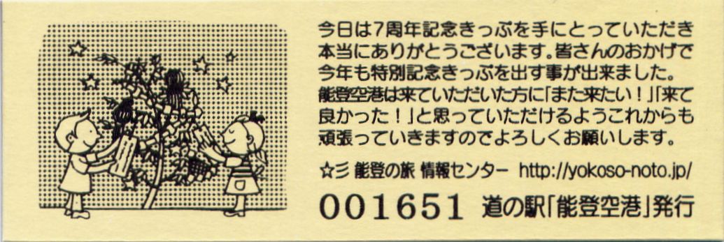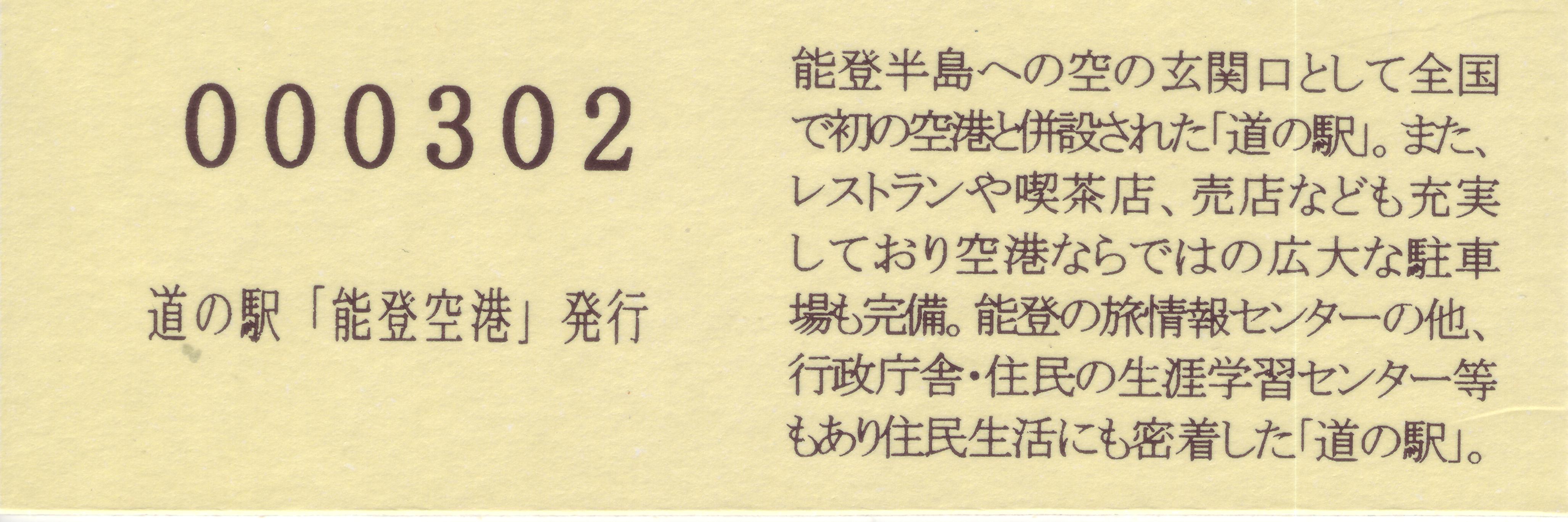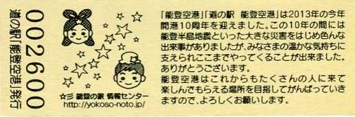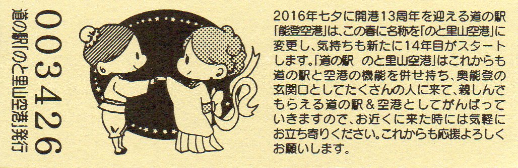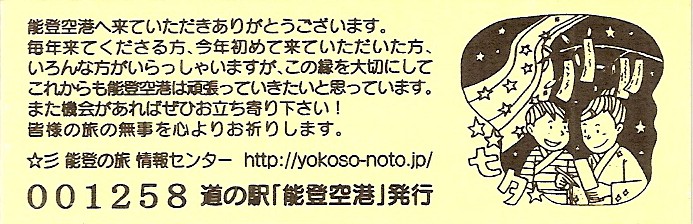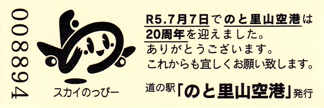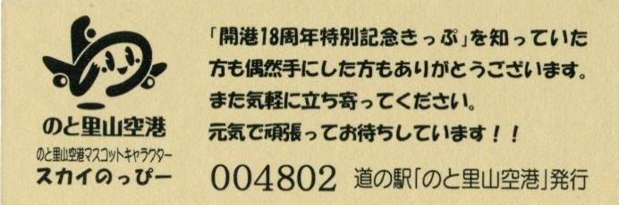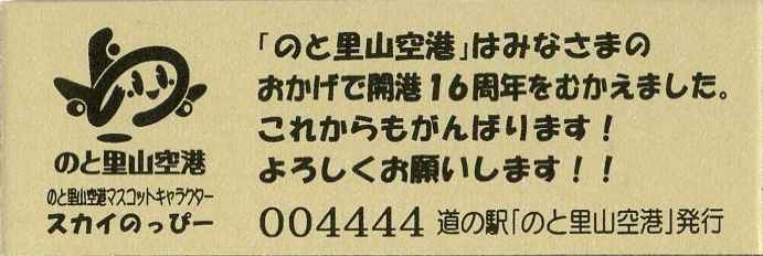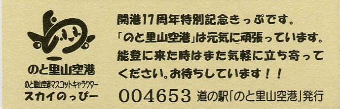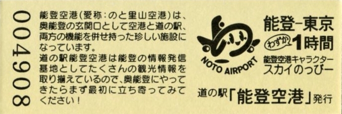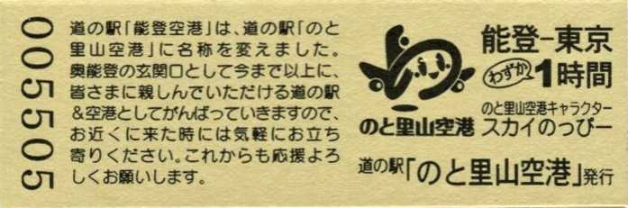 2016.05.31 きっぷ名変更(「のと里山空港」版) 2024.01.01 販売休止(能登大地震により休業) 2024.??.?? 販売再開(営業再開)