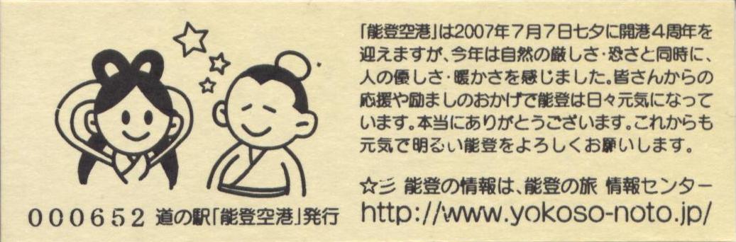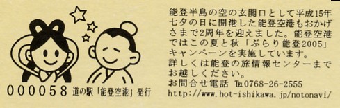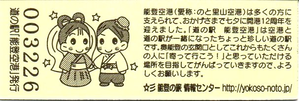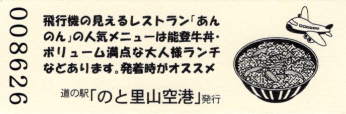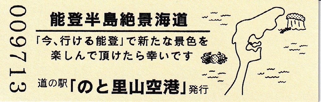 005501~007200 180円きっぷ(イラスト右・道の駅「能登空港」は・のと里山空港)