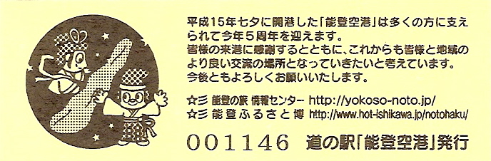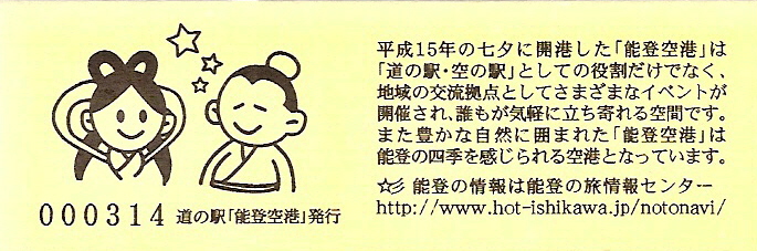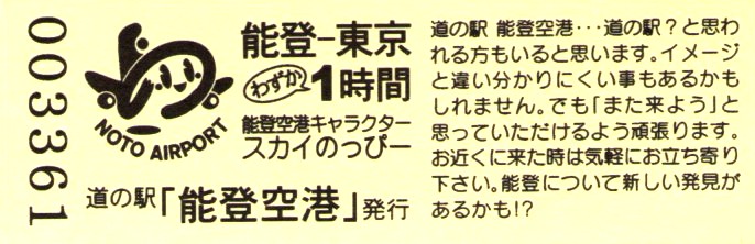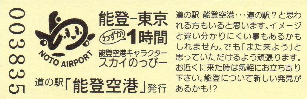 005201~005500 180円きっぷ(イラスト右・道の駅「能登空港」は・NOTO AIRPORT)