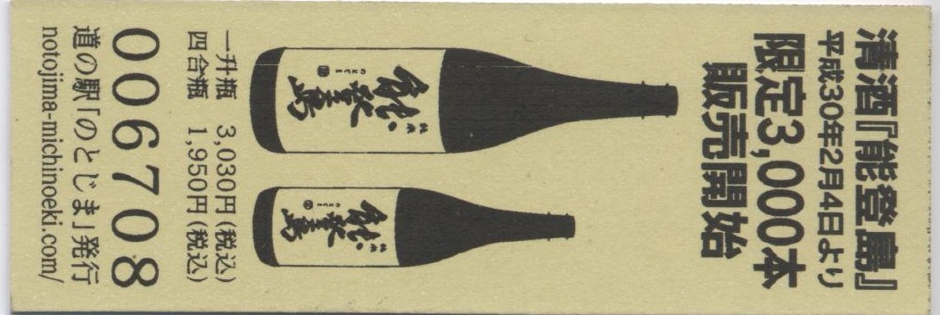 006101~006700 180円きっぷ(清酒「能登島」限定1000本)
