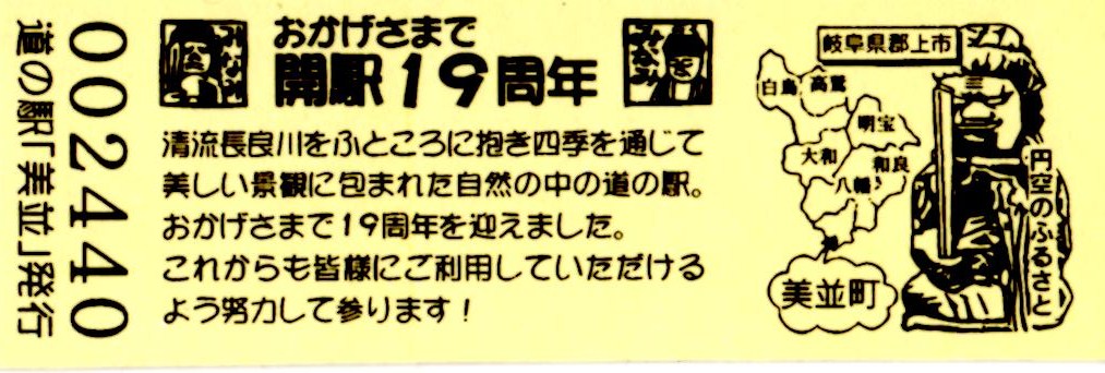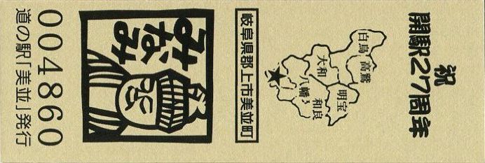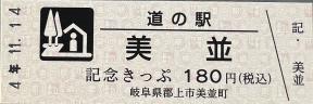 013801~014400 180円きっぷ(美並人口重心モニュメント)