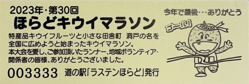 003301~003600 (特)第30回 2023 ほらどキウイマラソン記念きっぷ