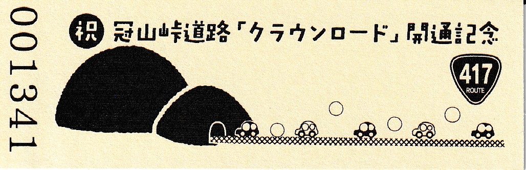 001201~001500 (特)冠山峠「クラウンロード」開通記念特別記念切符