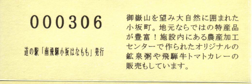 006001~006300 180円きっぷ(イラスト左・鉱泉粥や飛騨牛カレー)