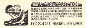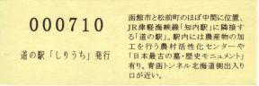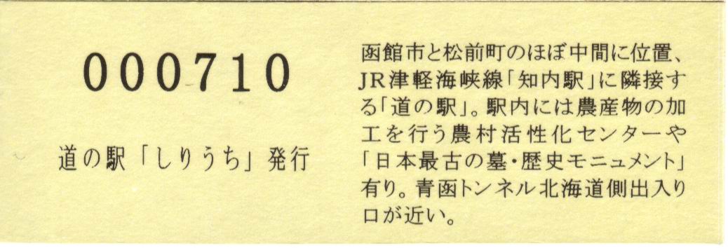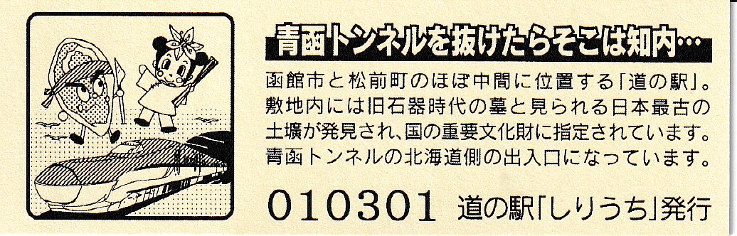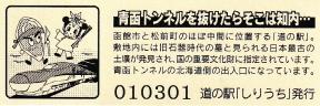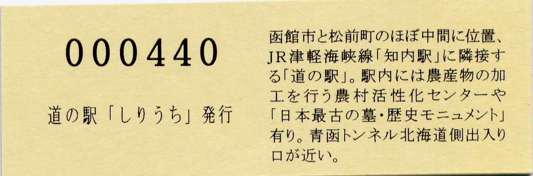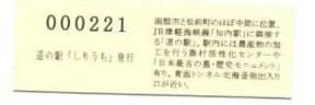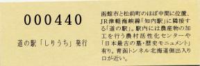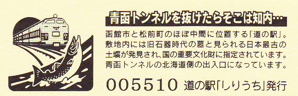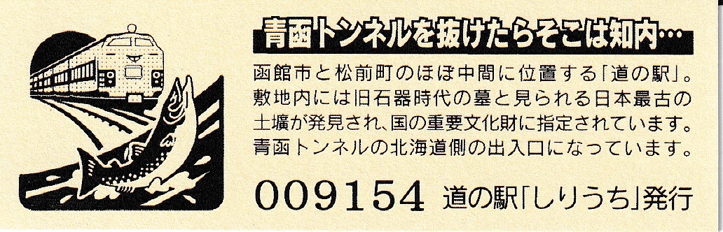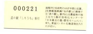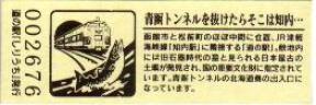 000001-000300:記念入場券(通常券) 000301-000600:記念きっぷ(入) 000601-001600:記念きっぷ(記) 001601-002500:デザインきっぷ(イラスト右) 002501-003400:デザインきっぷ(イラスト左・枠あり) 003401-004600:デザインきっぷ(イラスト左・枠なし) 004601-005500:180円きっぷ(JR津軽海峡線あり) 005501-009100:180円きっぷ(JR津軽海峡線なし) 009101-010300:200円きっぷ(特急、鮭) 010301- :200円きっぷ(かき太郎、にららちゃん、新幹線)