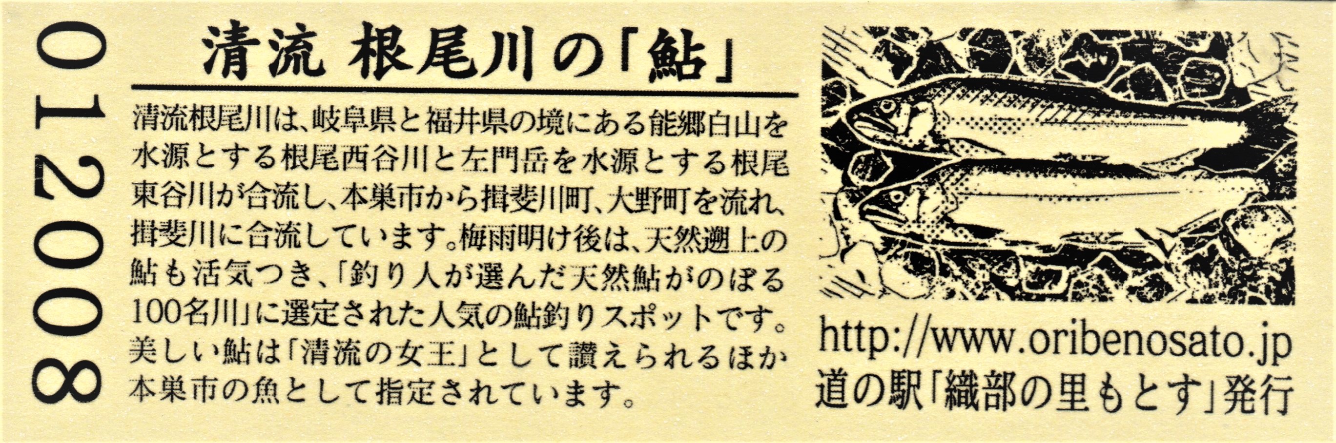 011901~012200 180円きっぷ(清流根尾川の「鮎」・右)