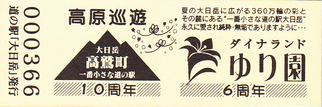 000301~000600 (特)道の駅登録10周年・ダイナランドゆり園6周年共同記念きっぷ