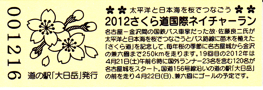 001201~001500 (特)2012さくら道国際ネイチャーラン記念きっぷ