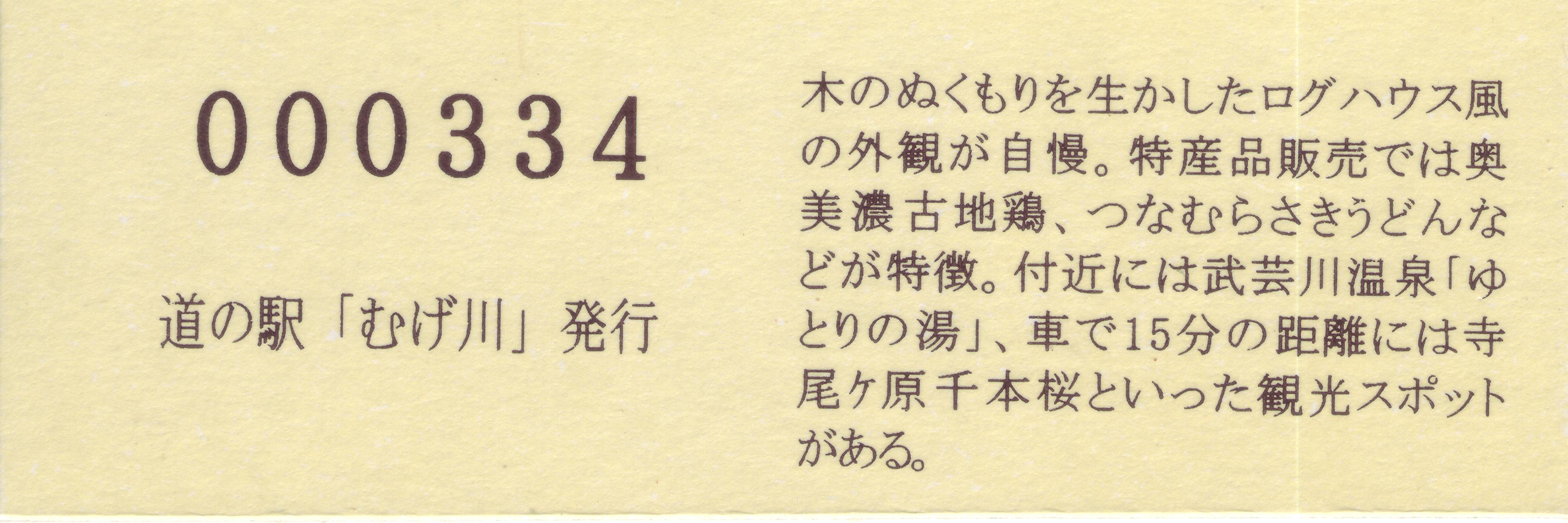 008201~008500 180円きっぷ(関市武芸川ふるさと館)
