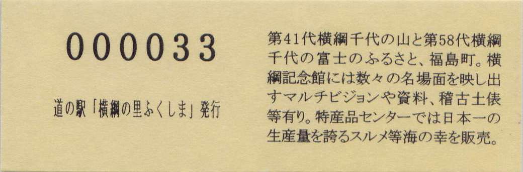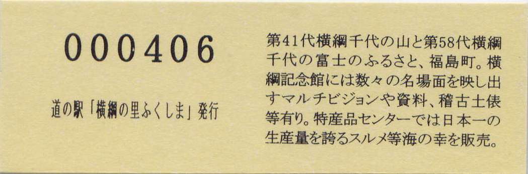 0001-0400:記念きっぷ(入) 0401-0600:記念きっぷ(記)<裏面文章のみ・住所左> 0601-1500:記念きっぷ(記)<裏面文章のみ・住所中央> 1501-2300:デザインきっぷ(イカ) 2301-2500:デザインきっぷ(横綱・イラスト右) 2501-3400:デザインきっぷ(横綱・イラスト左) 3401-4300:デザインきっぷ(横綱千代の山・千代の富士) 4301-7600:180円きっぷ 7601- :200円きっぷ