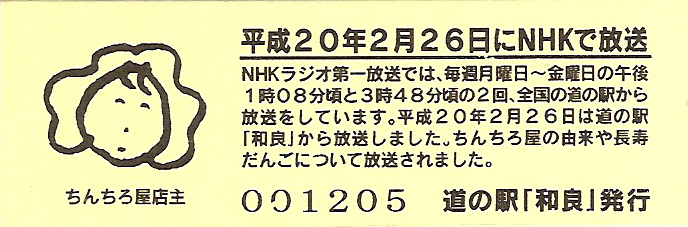 009001~009300 180円きっぷ(食べたらやみつき長寿だんご)