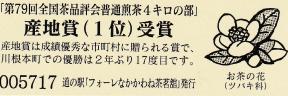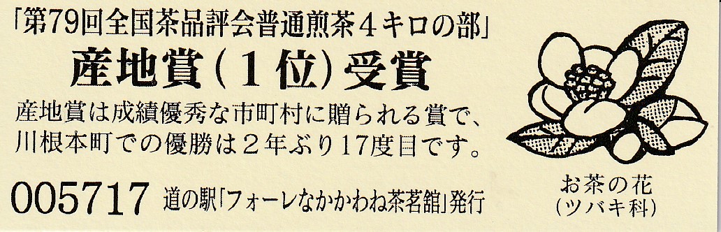 001801~002100 (特)「第67回全国茶品評会普通煎茶4キロの部」産地賞(1位)受賞記念きっぷ