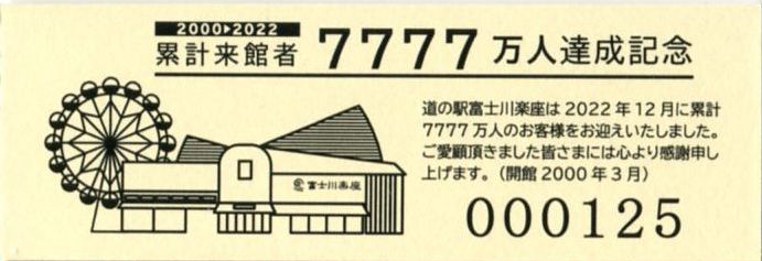 000001~000300 (特)累計来館者7777万人達成記念きっぷ