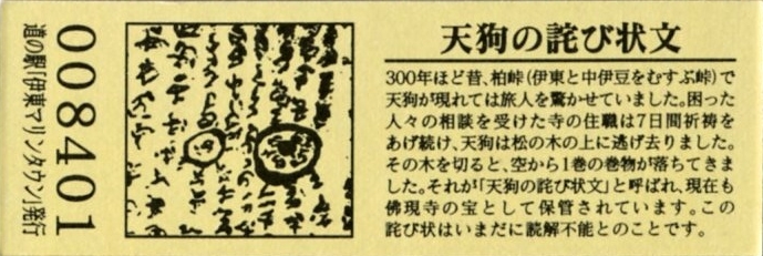 008401~008700 180円きっぷ(天狗の詫び状文)