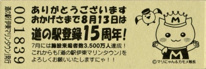 (特)道の駅登録5周年記念きっぷ(マリンタワー)