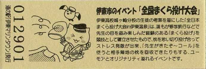 012901~013200 180円きっぷ(全国まくら投げ大会)