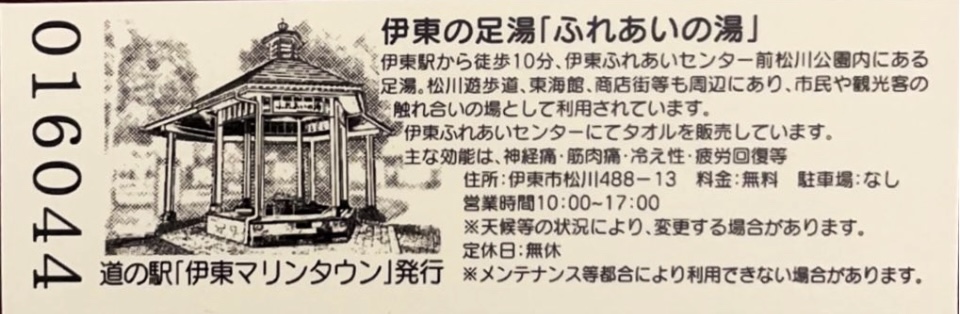 016001~016300 180円きっぷ(伊東の足湯「ふれあいの湯」)