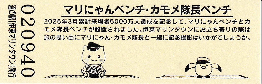020801~021100 200円きっぷ(マリにゃんベンチ・カモメ隊長ベンチ)