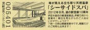 記念きっぷは「朝日の湯 シーサイドスパ」受付にて販売。